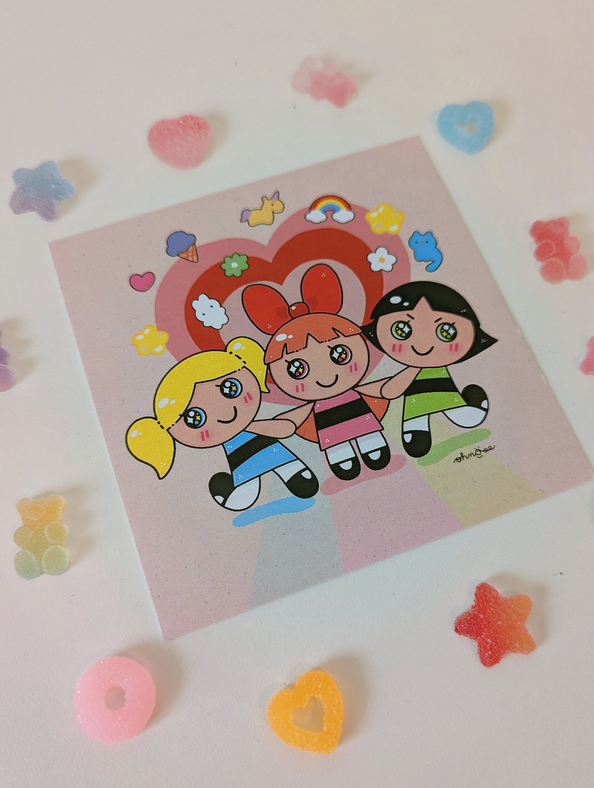 Powerpuff Girls 4x4 MINI SHIMMER Art Print| Bubble Blossoms Buttercup | 90's Design kid nostalgic cartoon| Sugar Spice & Everything Nice
